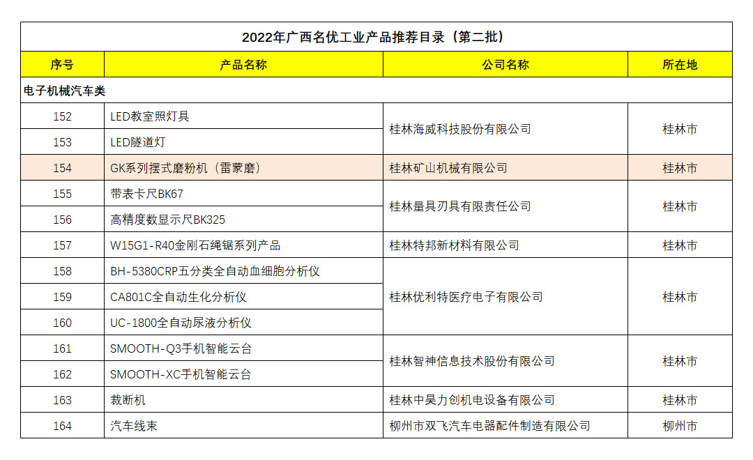 桂林(lín)礦機擺(bai)式磨粉(fěn)機入選(xuan)《廣西名(ming)優工業(yè)産品推(tui)薦目😘錄(lù)》