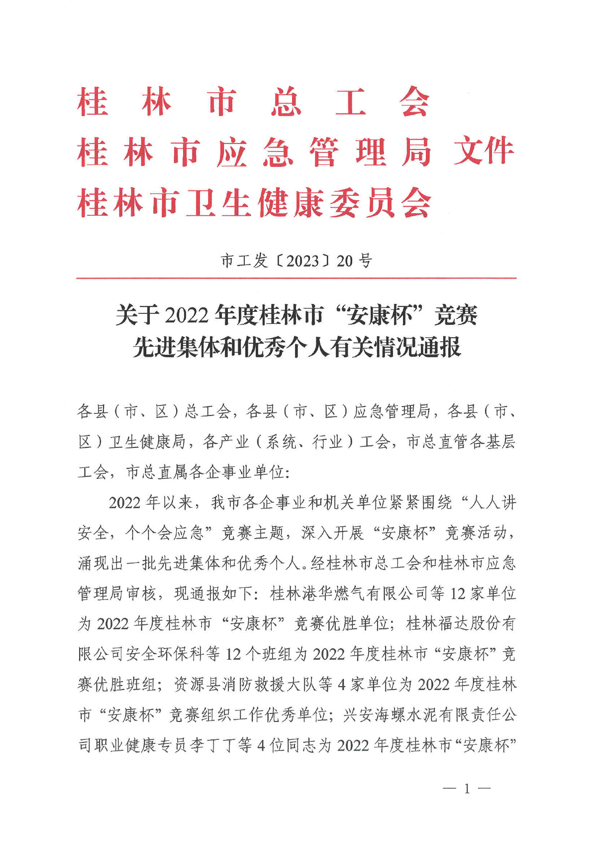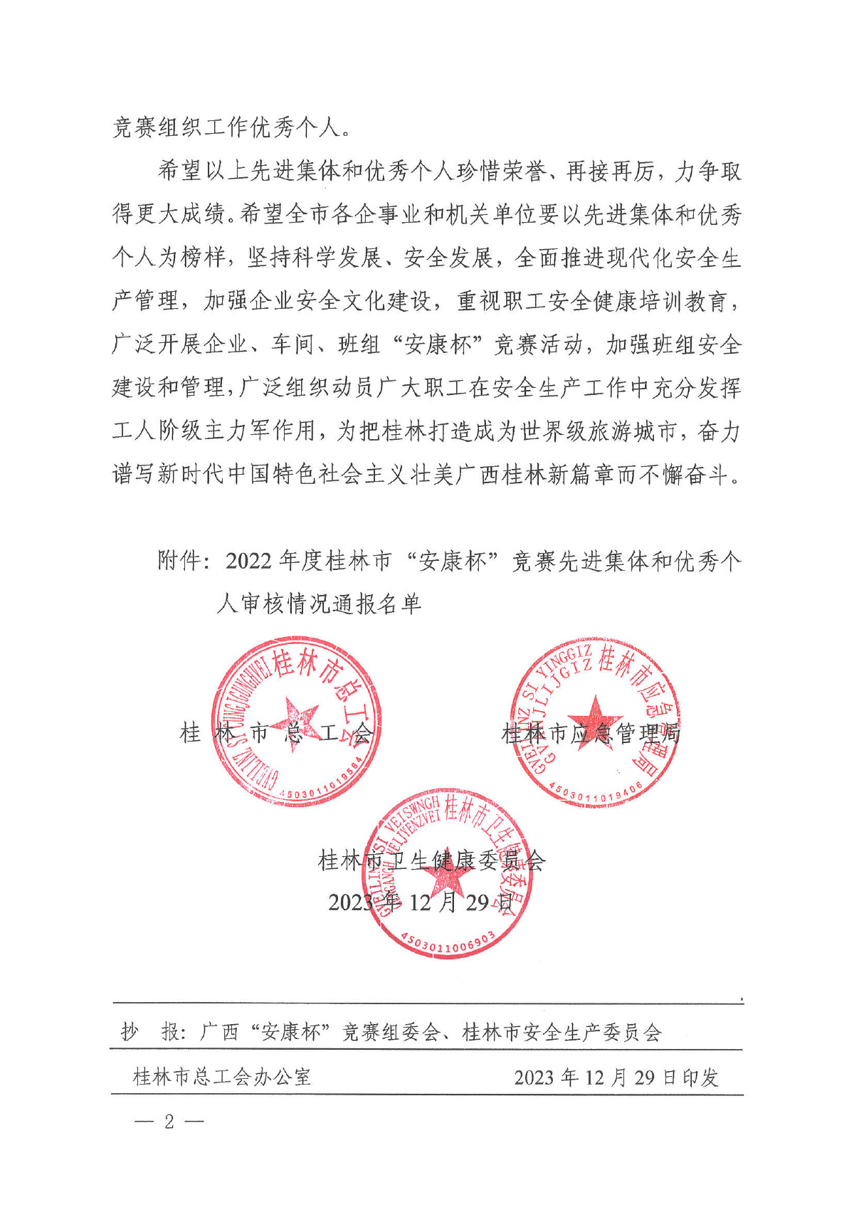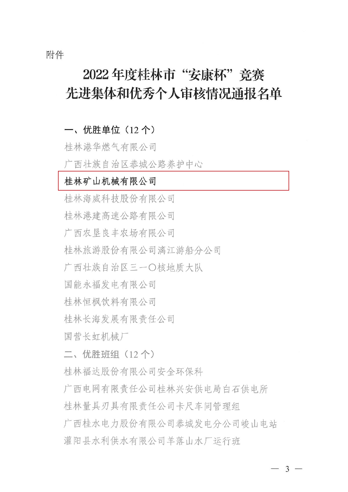 喜報(bao)!桂林礦(kuang)機榮獲(huò)桂林市(shi)“安康杯(bei)”競賽先(xian)進集體(tǐ)