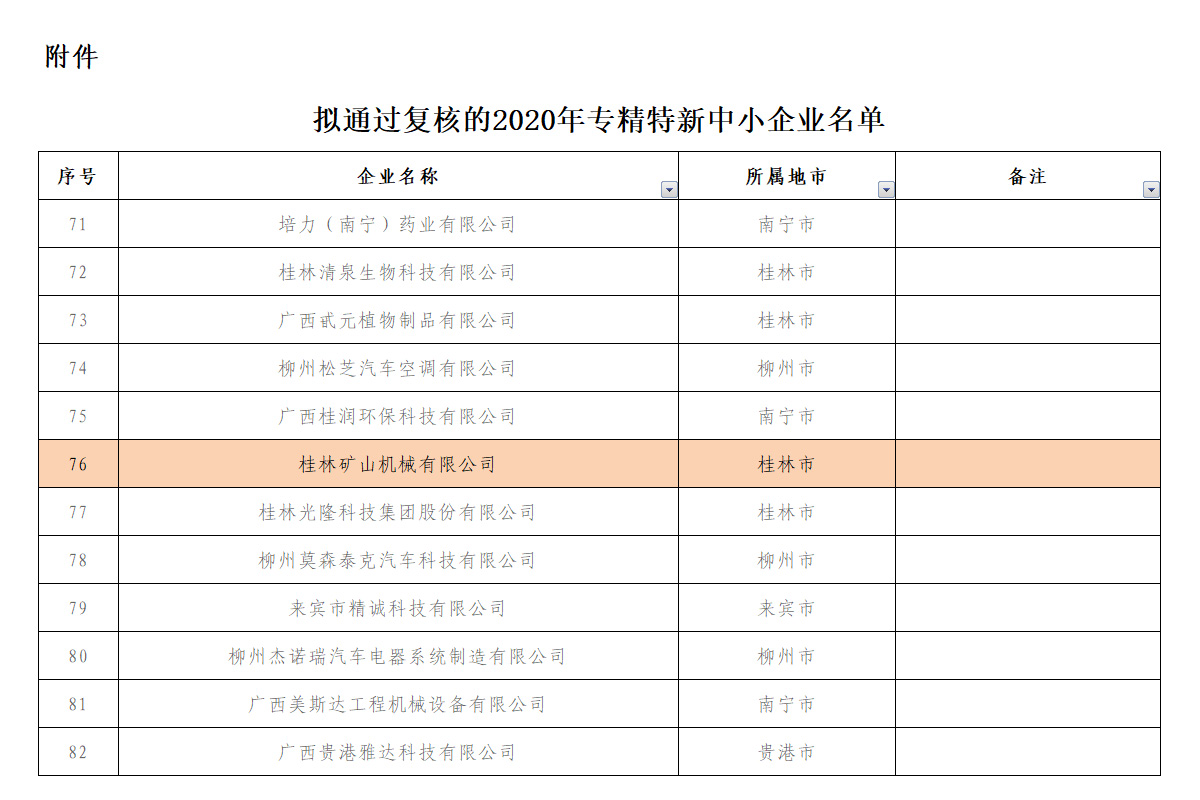 喜報!桂林礦機(jī)通過自治區工信(xìn)廳2020年專精特新中(zhong)小🐪企業複核公示(shì)